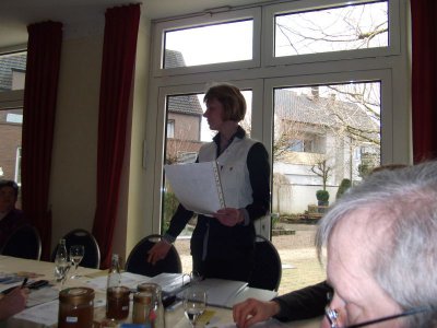 Oelde, der den ersten und den vierten Platz auf Landesebene zwei Jahre hintereinander errungen hat. Danach wurde über die Wahl einer/einen ersten Vorsitzenden diskutiert. Da die erste Vorsitzende, Rosemarie Alsmann, nach 14jähriger Tätigkeit nicht mehr zur Verfügung steht, musste ein neuer oder eine neue ![]()